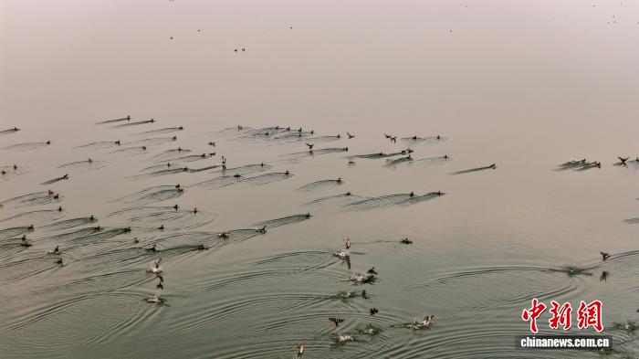 12月8日,不计其数的鸟女集合正在安徽省蚌埠市5河县沱湖天然珍爱区,它们或者翱翔,或者正在火里游弋。近些年去,该县不息加倍干天死态建设任务,干天火量逐年改进,为家活泼动物供给了合适的保存情况。(无人机相片)李背前 摄